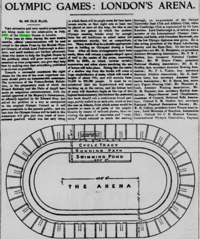 - “Olympic Games: The New Buildings Begun,” The Daily Telegraph, April 2, 1907, The Telegraph Historical Archive. ↩︎