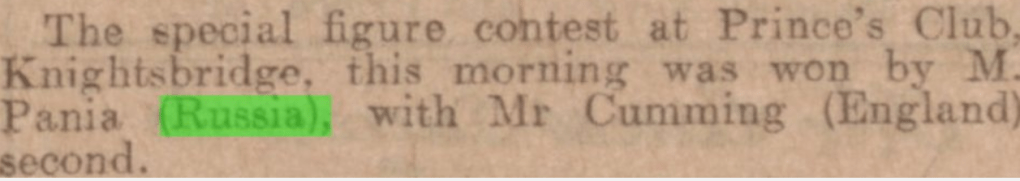 Beyond the mere scarcity of articles relating to Russian athletes, British newspapers actively chose to cover the British-American judging controversy over the equally problematic treatment of Nikolai Panin by his opponent Ulrich Salchow.