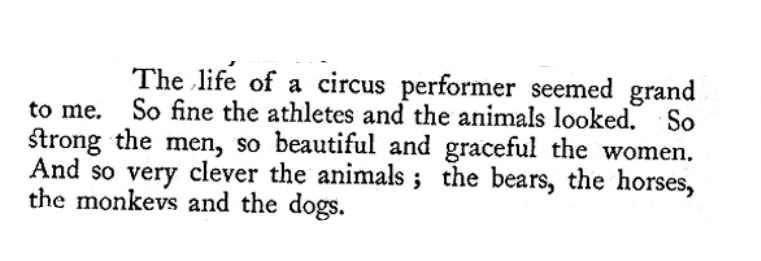 Zass traces his development to the first time he witnessed a circus. His wording is telling: